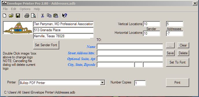 In addition to the above, I am including support for ALL ENVELOPE types that your printer will recognize.  Along with the ability for you to define address positioning on each Printer/Envelope combination.